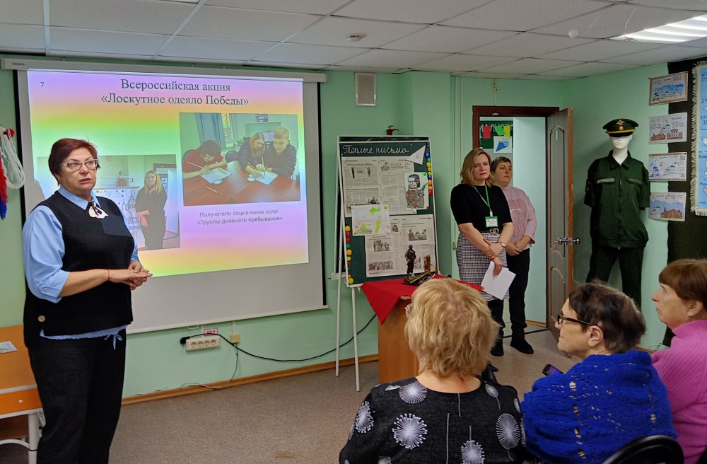 В социально – реабилитационном отделении для граждан пожилого возраста, инвалидов и детей с ограниченными возможностями КГБУ СО «КЦСОН «Северный» прошло заключительное мероприятие в рамках Всероссийской благотворительной акции «Лоскутное одеяло Победы». В течение месяца мы дружно расписывали лоскуты ткани, из которых были сшиты два панно. Всего приняло участие в акции пятьдесят человек: слушатели факультета «Культура и …