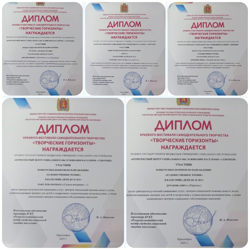 КГБУ СО «Комплексный центр социального обслуживания населения «Северный» поздравляет ребят и руководителей участников фестиваля с заслуженными наградами.