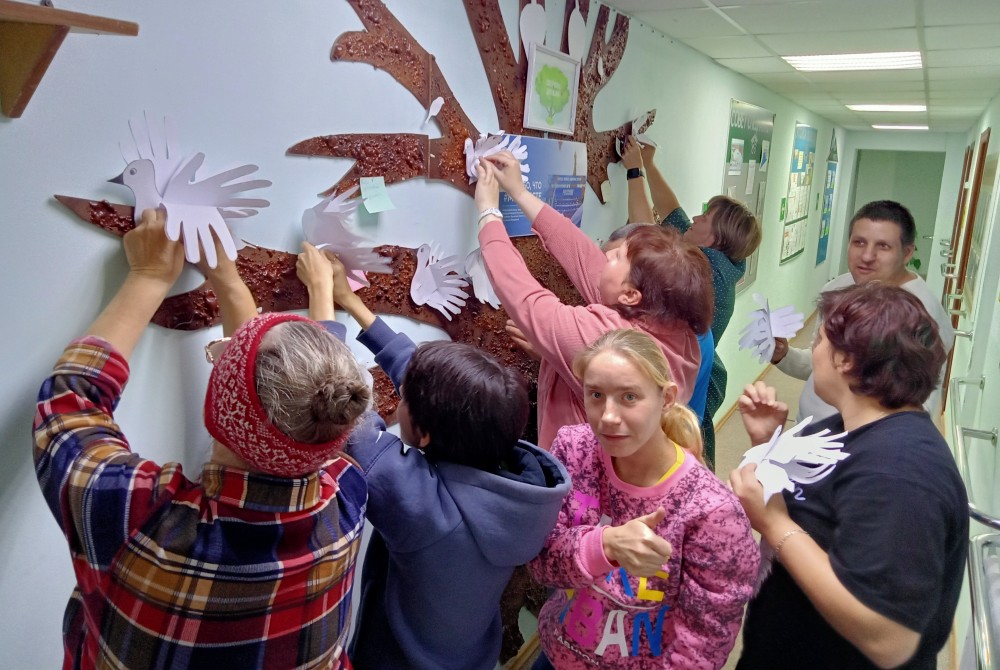 Получатели услуг отметили, что горячо поддерживают эту акцию и прикрепили голубя на «Дерево добра».