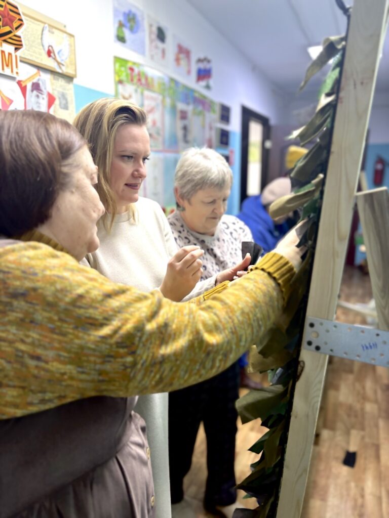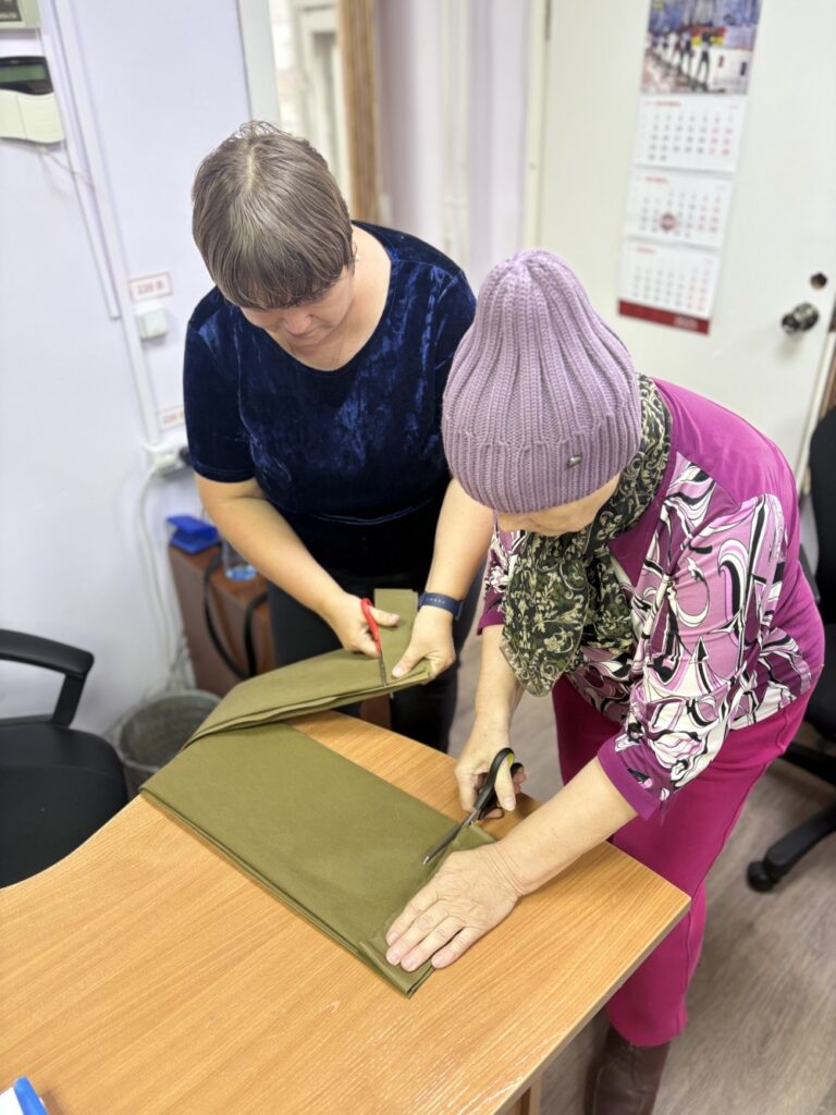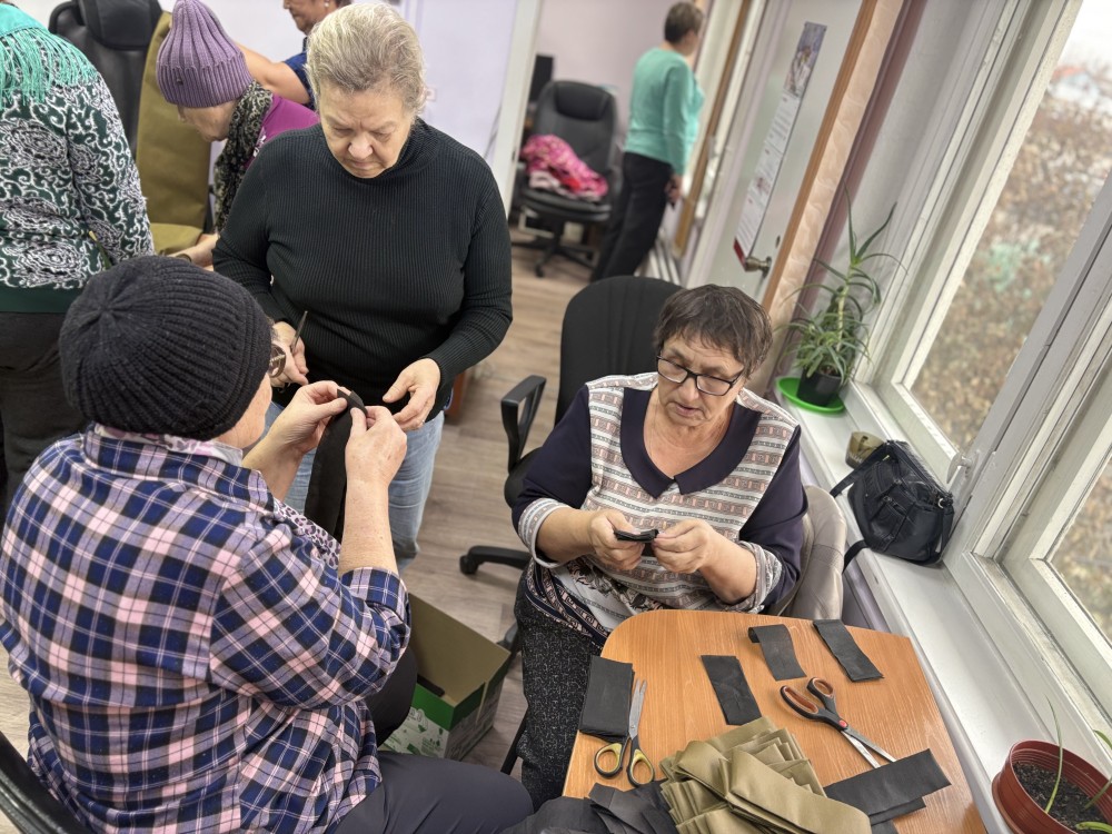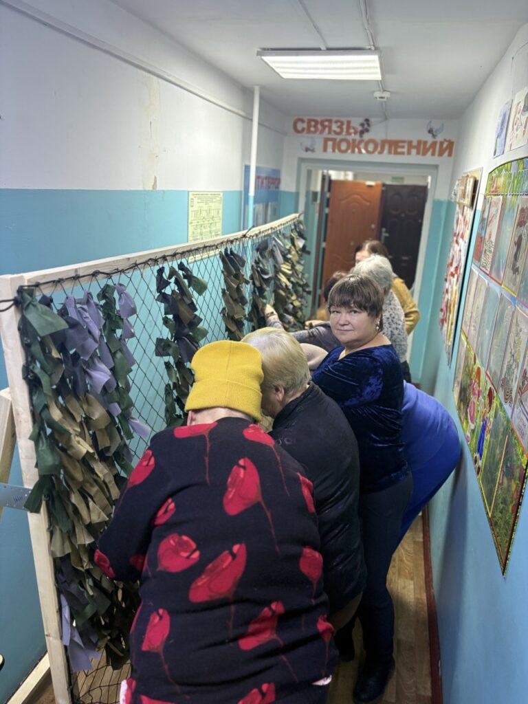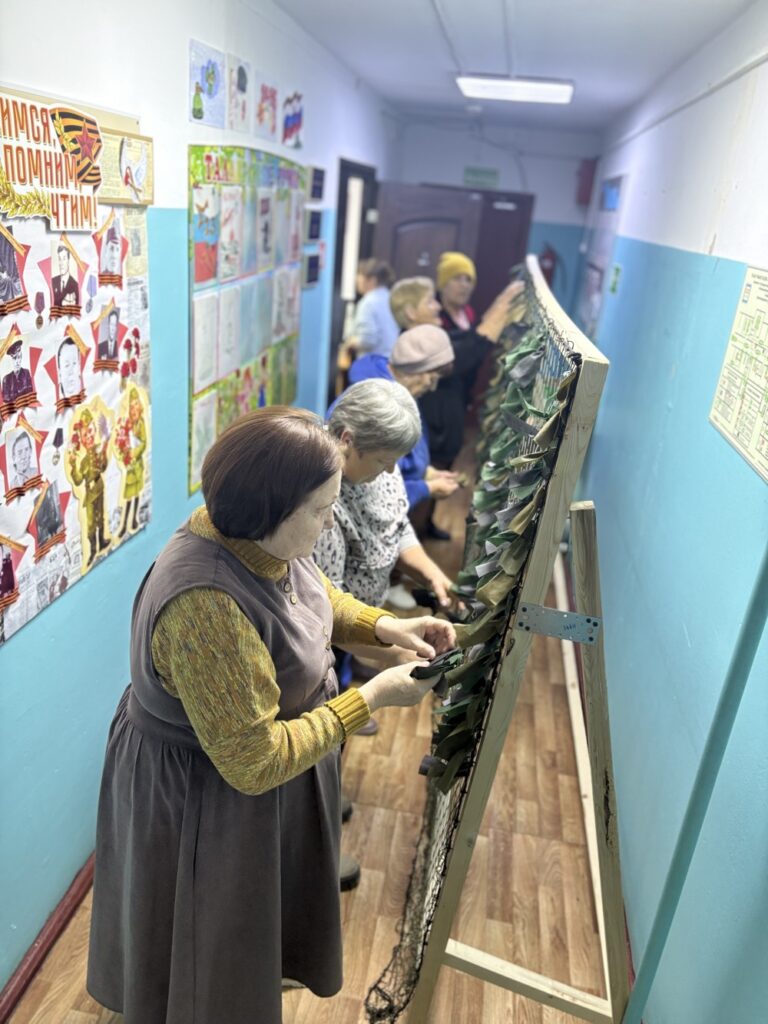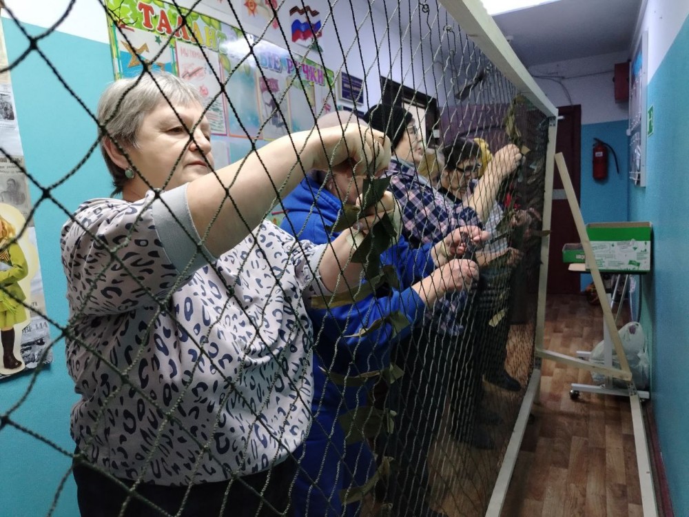 Сегодня был особенный и важный день, где каждый внес частичку своего тепла. Пожилые люди подключились к процессу изготовления маскировочных сетей для бойцов, задействованных в специальной военной операции. У нас развернулся мини-цех, где одна группа нарезала лоскуты из ткани, другая вплетала их в основу, используя определённый ход узла. Работа кипела.